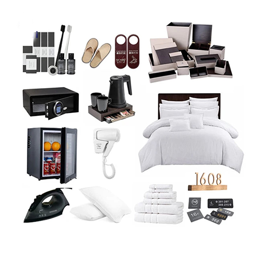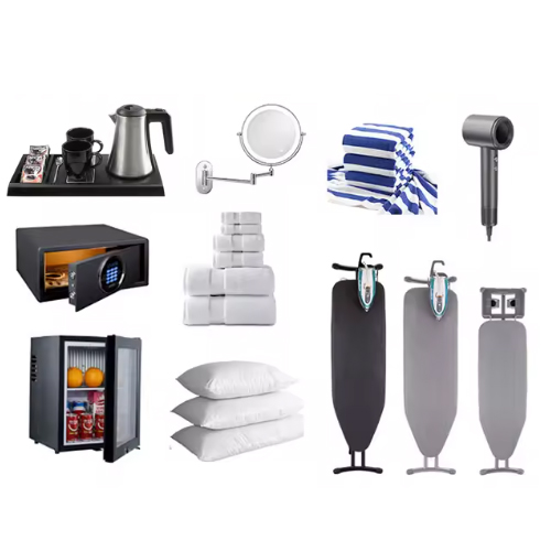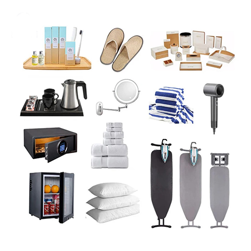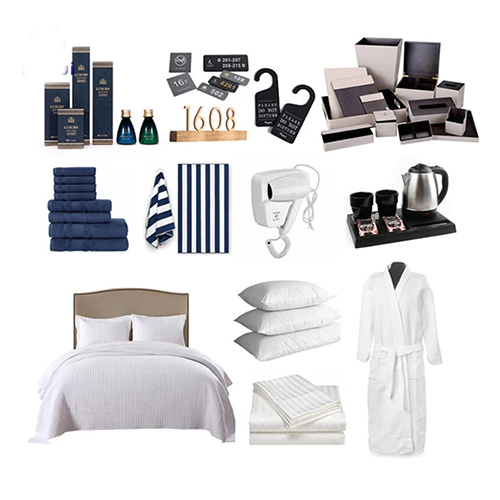 Premium-quality bathroom amenities including toiletries, towels, dispensers, grooming kits, and hygiene essentials. Each product is crafted to provide guests a luxurious and refreshing experience, ensuring the highest standards of cleanliness and comfort.